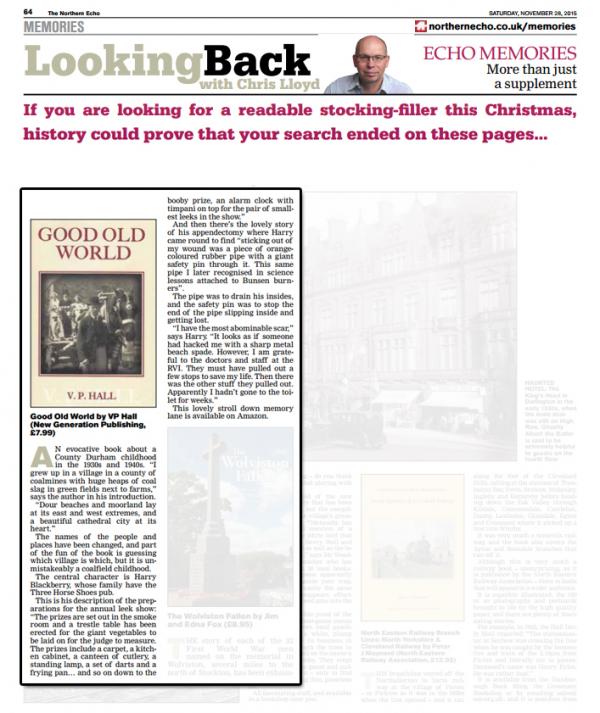 Author V.P. Hall gets a great spot of publicity in the Northern Echo last month with a review from Chris Lloyd as part of their 'Looking Back' supplement.